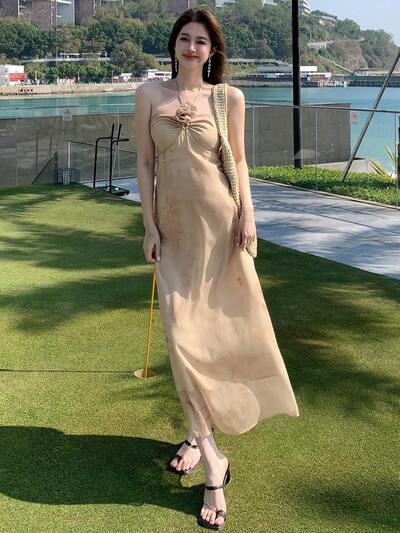 Summer New Sweet Princess Style Dress, Spaghetti Strap High-Quality Stereoscopic Floral, Textured Ruffle Beach Vacation Dress For Women Sundress-65%
