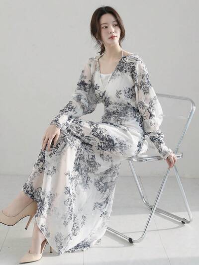 Women's Elegant Long Ink Painting Floral Print Dress Vacation-27%