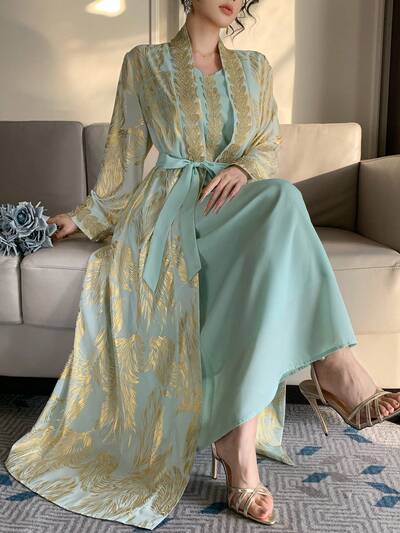 2pcs/Set Women's Bohemian Style Dress And Long Cover Up, Elegant Vacation Outfit-64%