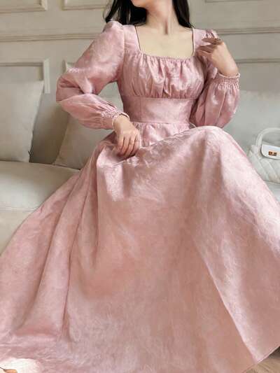 Women's Elegant Long Dress With Ruffle Trim & Puff Sleeves, Spring/Summer Wedding Women Dresses Maxi Dress-42%
