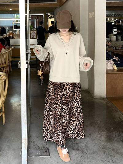French Style Leopard Print Long Waist-Cinched Dress For Women, Fall Dress Long Sleeve Dress-23%