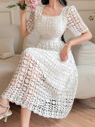 Women's Elegant Textured Lace Long Dress, Suitable For Spring And Summer