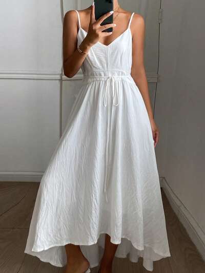 Women's Casual Solid Color Spaghetti Strap Dress, Summer