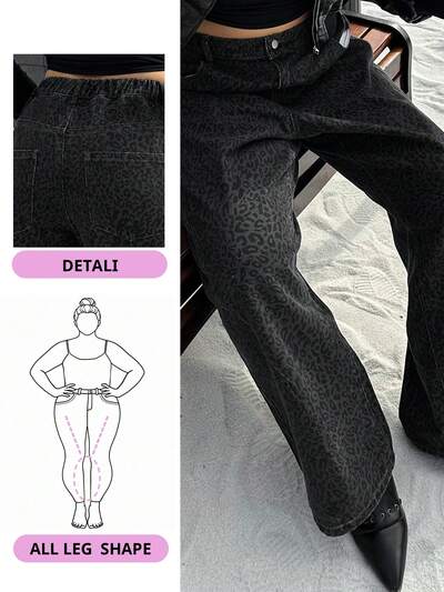 Dazy Plus Plus Size Women Leopard Print Flare Leg Jeans, Fashionable Street Style, Spring/Autumn-44%