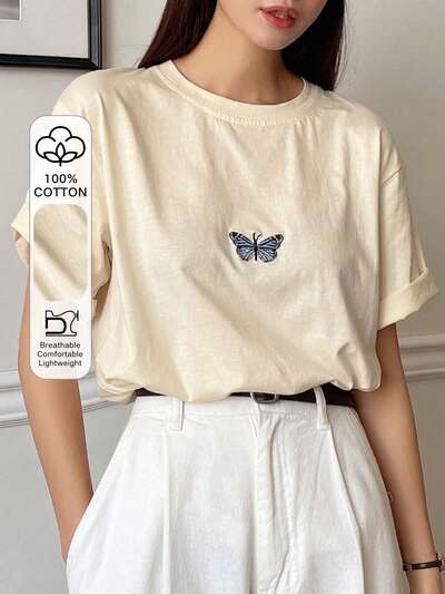 Butterfly Embroidery Batwing Sleeve Tee-49%