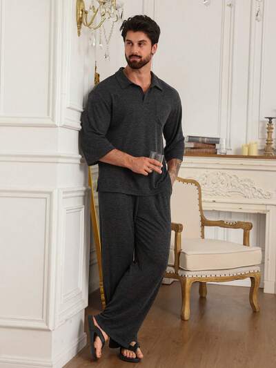Men's Casual Shirt And Pajama Set, Suitable For Spring And Autumn-63%