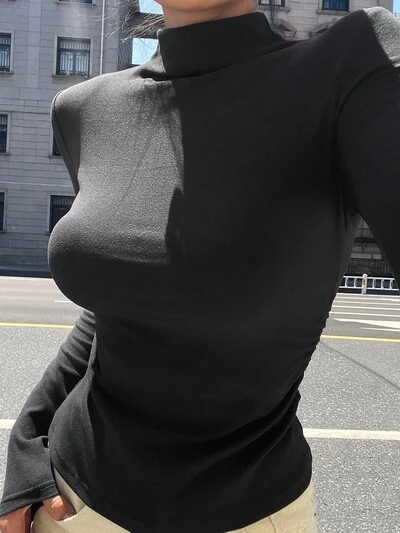 Women's Solid Color Stand Collar Fitted Outdoor Base Layer Sports T-Shirt-55%