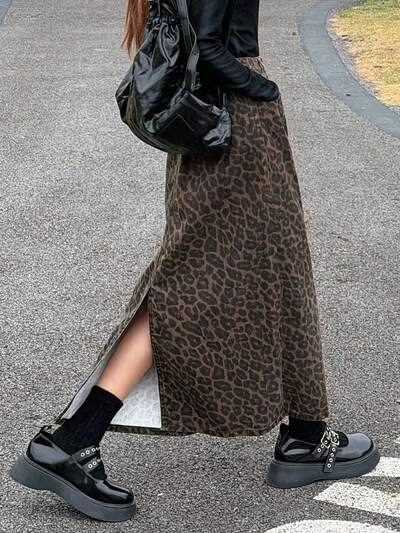 Teen Girl Leopard Print Slant Pocket Casual Denim Mini Skirt
