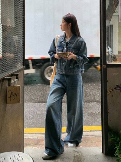Loose Fit Retro Casual Versatile American Style Fashionable New Denim Jacket Set-40%