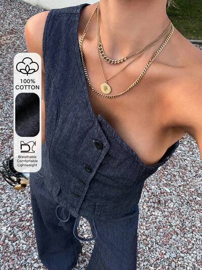 Women's Casual Asymmetric Neck Sleeveless Top And Straight Leg Jeans Set, Spring/Summer-25%