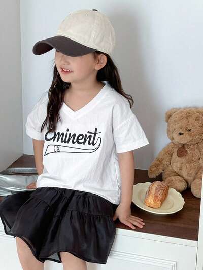 Young Girl V-Neck Casual Korean Style Letter Print Short Sleeve T-Shirt, Summer-48%