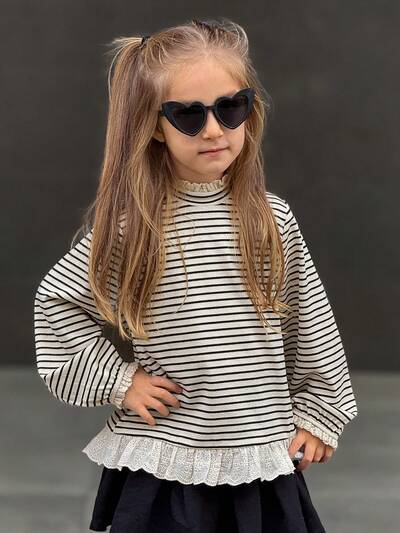 Young Girls Crew Neck Striped Knit T-Shirt-72%