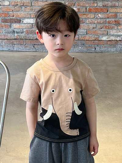 Young Boys Round Neck Short Sleeve Casual Everyday Summer Versatile T-Shirt-46%