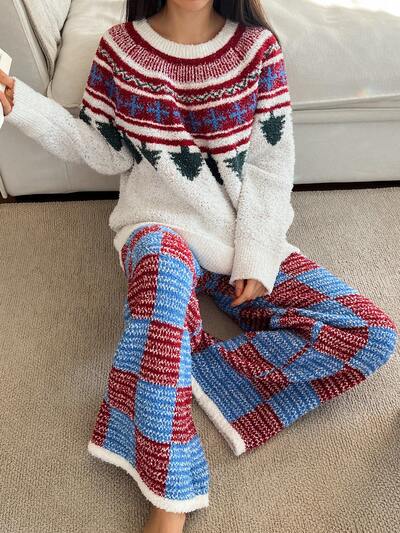 2pcs Women Knitted Loose Long Sleeve Top And Long Pants Pajama Set, Winter-60%