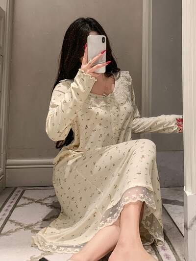 Sweet Floral Lace Trim Decorative Women Nightgown-56%