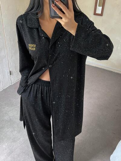 Sequin Letter Print Long Sleeve Pajamas Set-65%