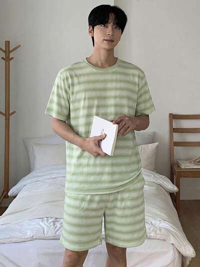 Men's Summer Short Sleeve T-Shirt And Shorts Striped Pajama Set-60%