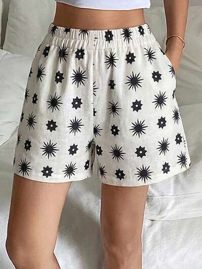 Women's Loose Beach Vacation Allover Print Short Pajama Bottoms, Summer-67%