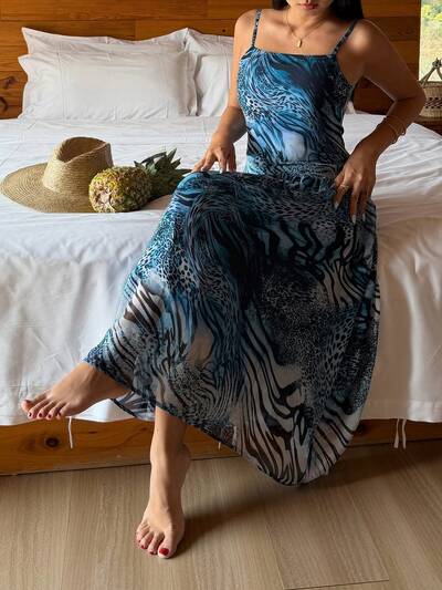 Women's Lightweight Animal Print Mesh Maxi Nightgown, Summer-19%