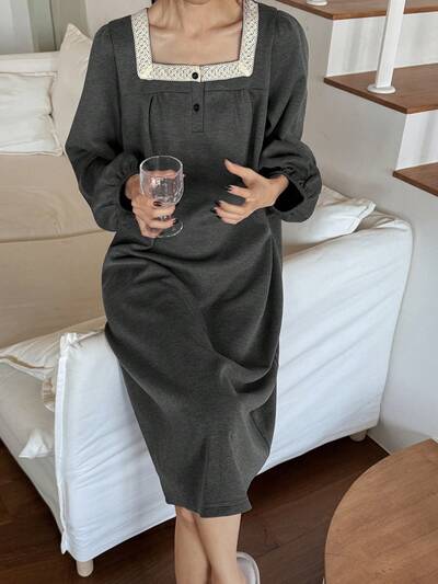 Color Block Lace Trim Patchwork Women's House Dress Pajama