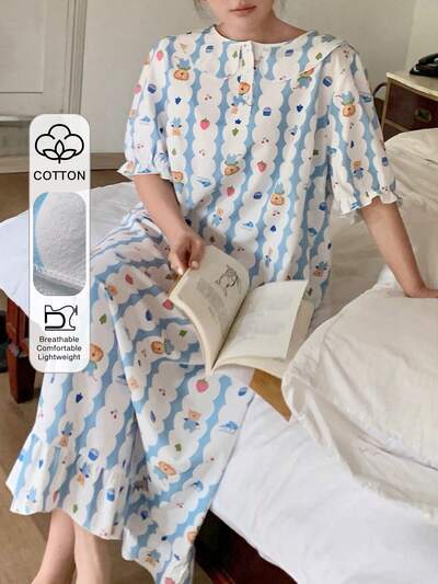 Dazy Plus Cartoon Print Pattern Peter Pan Collar Loose Casual Long Plus Size Women's Spring/Summer Nightgown-35%