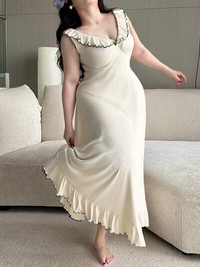 Dazy Plus Elegant Ruffled V-Neck Wrap Long Nightgown Sleepwear-18%