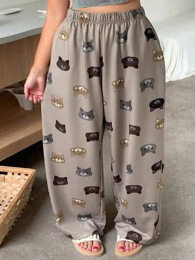 Dazy Plus Plus Cute Animal Print Elastic Waist Loose Pajama Cozy Pants, Home Sleepwear Bottom, Fall & Winter-60%