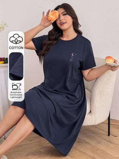 Dazy Plus Plain Color Casual Letter Print Pattern Round Neck Straight Fit T-Shirt Nightgown-40%