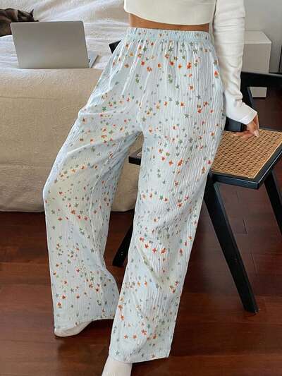 Colorful Star Pattern Loose Straight Leg Pajama Pants For Women-50%