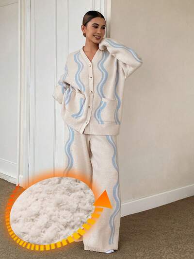 Comfortable Striped Jacquard Knit Women's Loungewear Set-58%