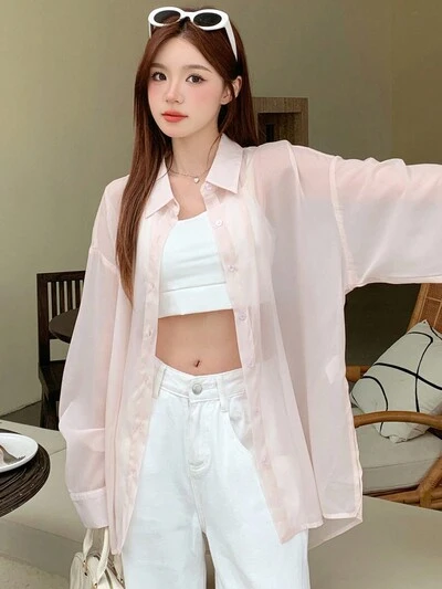 Women's Long Sleeve Sun Protection Shirt Sheer Preppy Tops,Fall Women Clothes-44%