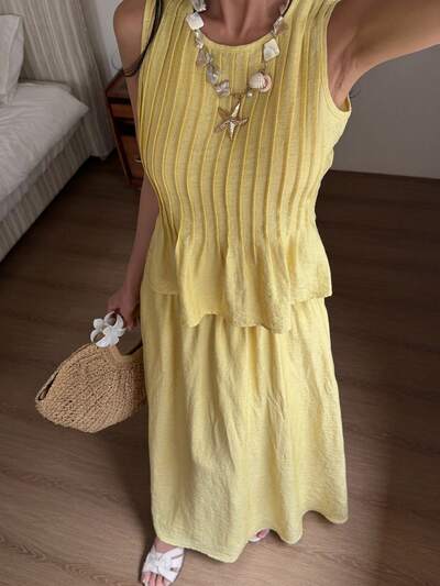 Women's Casual Elegant Sleeveless Top And Long Skirt 2 Pieces Set, Spring/Summer-27%