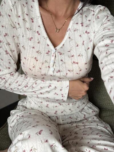 2pcs Women's Ditsy Floral Long Sleeve Top And Pants Set-40%