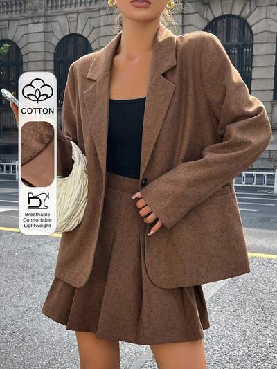 Women's Autumn Lapel NeckLong Sleeve Blazer And Pleated Midi Skirt Casual 2 Pieces Set-26%