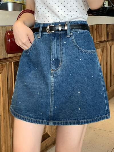 Women's Casual Rhinestone Decorated Denim Mini Skirt, Summer-60%