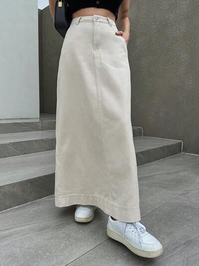 Women's Casual Slit Maxi Denim Skirt, Streetwear Style-30%
