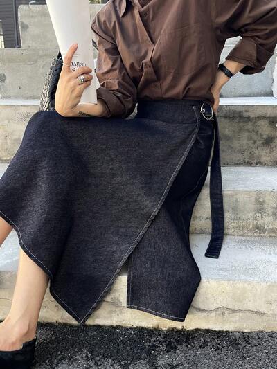 Women's Asymmetrical Design Waist Slit Casual Denim Skirt-25%