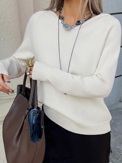 Women's Solid Color Loose Fit Hooded Long Sleeve Casual Elegant Knit Sweater, Autumn/Winter-60%