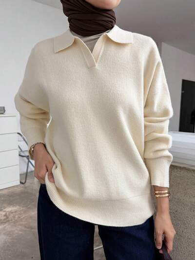 Women's Loose Oblique Shoulder Ribbed Knit Sweater-35%