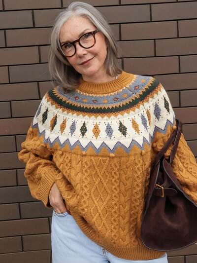 Elegant Lace Patchwork Knitted Sweater For Women, Autumn/Winter