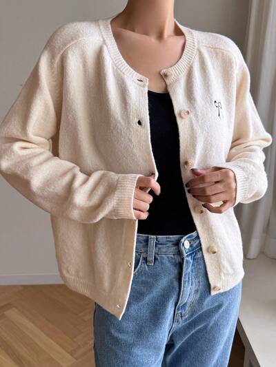 Women Casual Embroidered Bow Raglan Sleeve Open Front Knit Cardigan, Autumn/Winter,Fall Women Clothes-49%