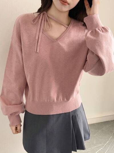 Round Neck Pullover Soft & Fluffy Cable Knit Sweater For Women, Loose Fit Backless Tie-Up Design, Autumn/Winter Vacation-53%