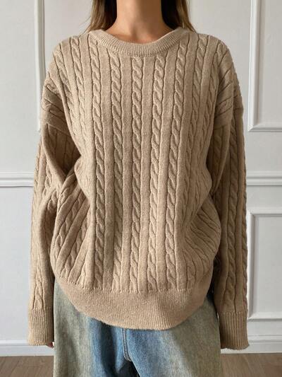 Women's Casual Elegant Cable Knit Round Neck Ruffled Long Sleeve Sweater, Autumn/Winter,Fall Women Clothes-60%