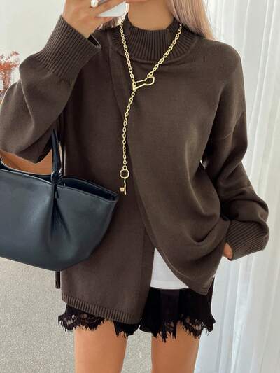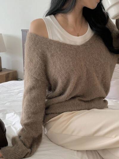Women's Autumn/Winter Fuzzy Tie-Dye Tie Dye Solid Color Minimalist Pullover Knit Sweater