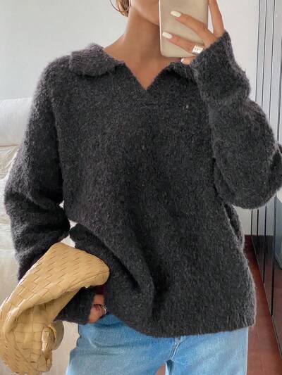 Oversized Casual Basic Long Sleeve Polo Neck Sweater,Fall Women Clothes-60%