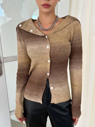 Ombre Sailor Collar Button Front Cardigan,Fall Clothes Jacket-60%