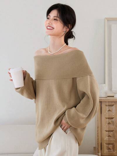Oversize Off-Shoulder Knitted Sweater Top, Unique Design Long Sleeve Casual Pullover For Women Off Shoulder Sweater,Fall Clothes-60%