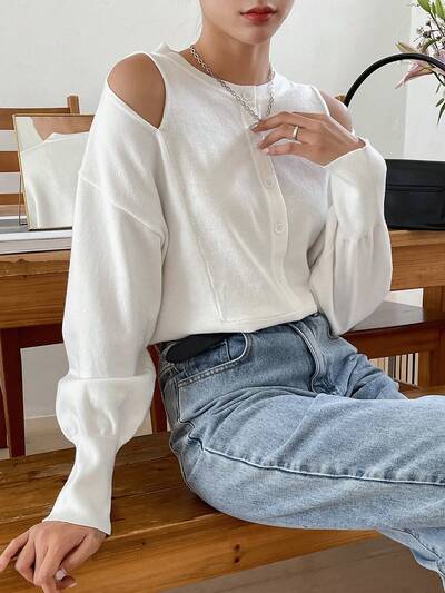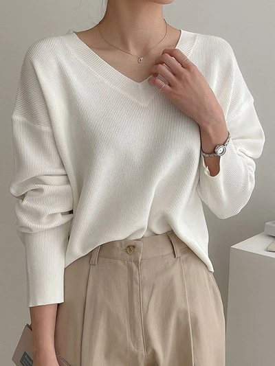 Drop Shoulder Ribbed Knit Sweater,Long Sleeve Tops,Fall Clothes-35%