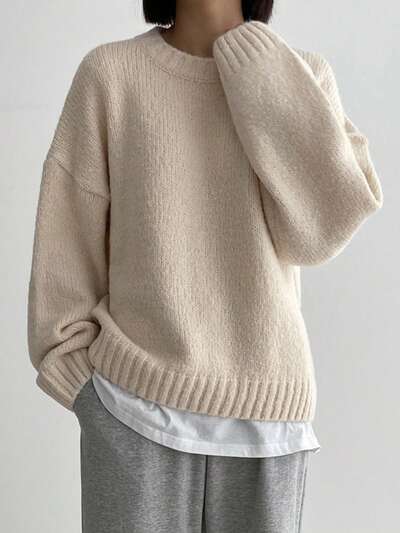 1pc Solid Drop Shoulder Sweater,Long Sleeve Tops,Fall Women Clothes-35%