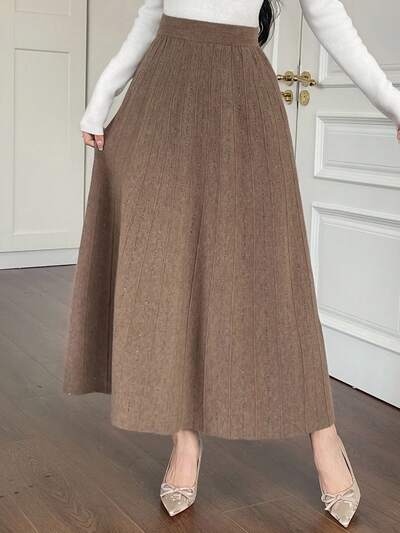 Women's Elegant Solid Color A-Line Sweater Skirt, Autumn Winter Women Skirts-41%